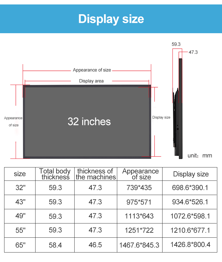 Hongnuo 65 inch Touch HD LCD Screen 4K resolution Wall Mounted Ultra Thin For Advertisement display