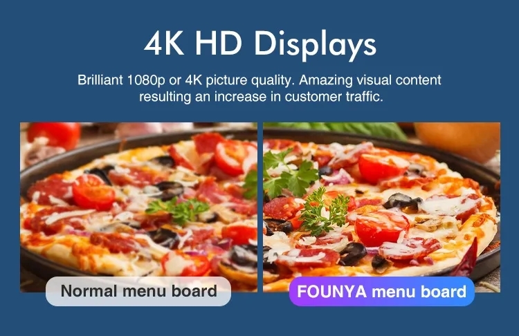 Food and beverage industry: Display product information for milk tea shops and other food establishments, show advertising, play videos of food production processes, and display corporate chain examples.