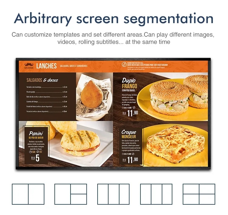 Food and beverage industry: Display product information for milk tea shops and other food establishments, show advertising, play videos of food production processes, and display corporate chain examples.