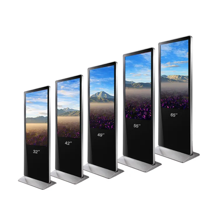 Customized 55 inch Super Slim Floor Standing Digital Signage 4k screen Metal case with 4 wheels