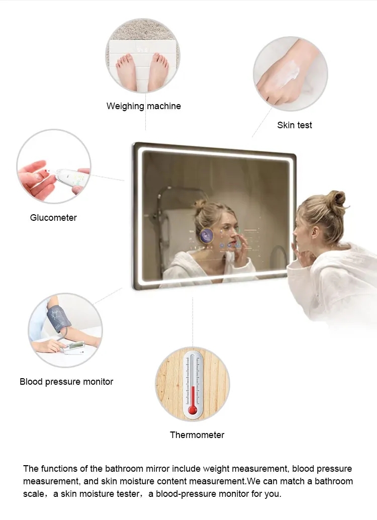 The smart bathroom mirror can display the real-time time and temperature on the mirror surface and can be connected to Bluetooth to listen to songs or make phone calls online, even in the shower will not miss important calls can also enjoy the feeling of singing in the bathroom. The smart bathroom mirror also has the advantage of being rust-resistant and long-lasting. This also means that you do not have to replace the mirror often because of the problem of rust.