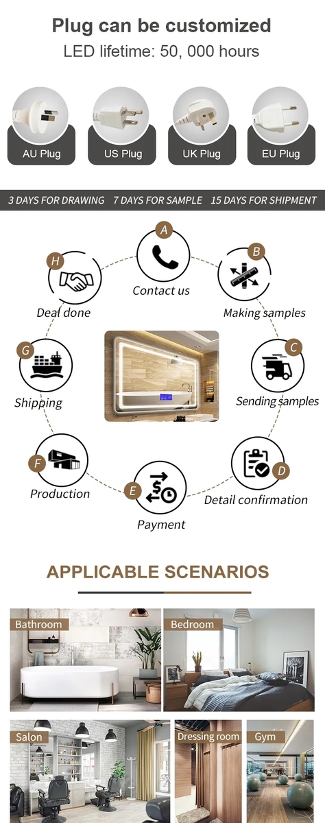 The smart bathroom mirror can display the real-time time and temperature on the mirror surface and can be connected to Bluetooth to listen to songs or make phone calls online, even in the shower will not miss important calls can also enjoy the feeling of singing in the bathroom. The smart bathroom mirror also has the advantage of being rust-resistant and long-lasting. This also means that you do not have to replace the mirror often because of the problem of rust.