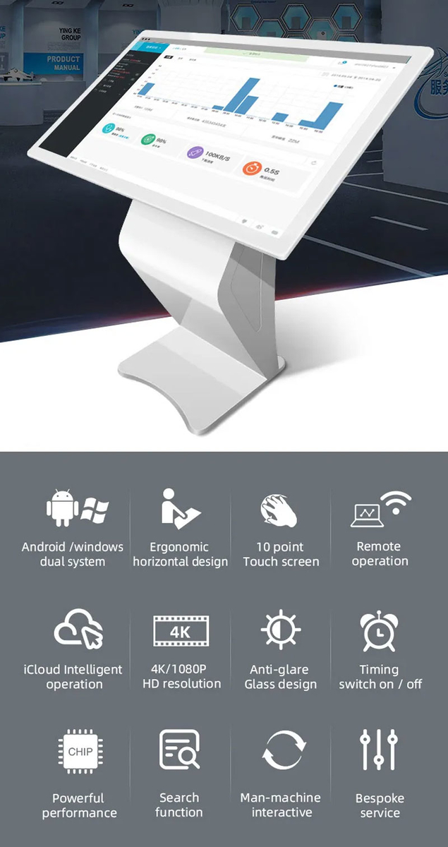 LCD 65 Inch i 3 4+128gb Touch Screen Kiosk , Interactive Table Kiosk Floor Standing For Information Query