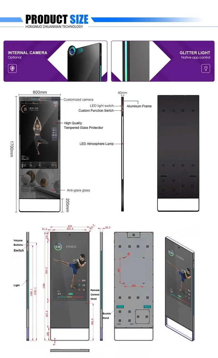 55 Inch Customized floor standing Android system Smart Fitness Mirror For Home Yoga Dance Exercise