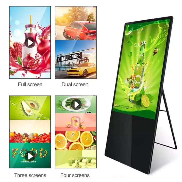 Portable 32 Inch Floor Standing Digital Signage Display , 4k Portable Digital Poster video disply