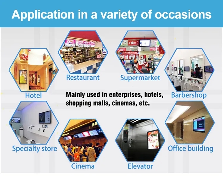 Supermarket advertising: Display product details, prices, and other information; advertising in elevators, and more.