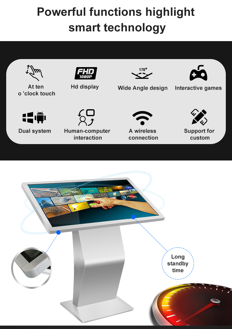 43 inch LCD Interactive Touch Screen Digital Kiosk, 10pt IR Display, Android OS Multi Stand