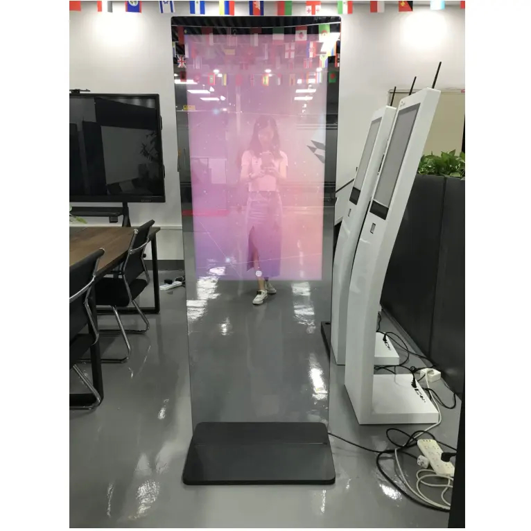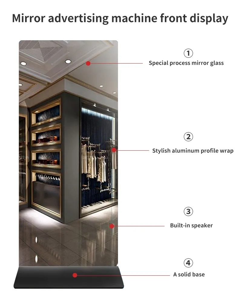 Human body sensor is optional to install, when the magic mirror detects someone standing in front, it will automatically shrink or close the advertisement.